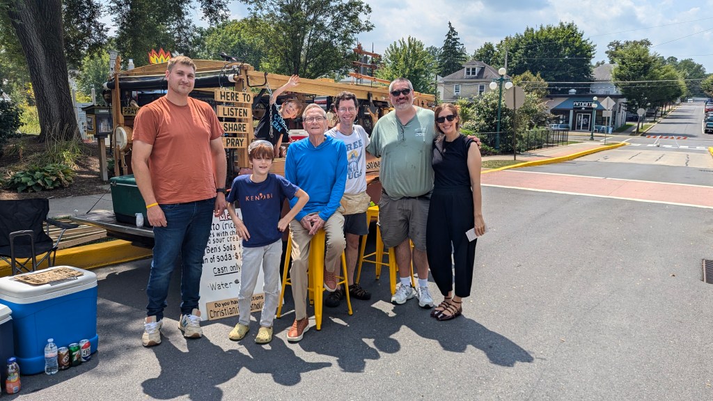 When it was my turn, I walked up the stairs with my gear and said something like this: “My name is Lucas Southerton, and I’m a shop teacher in Mifflinburg, and I live in Millmont. In some ways, I’m a bit of a redneck, and I’m sure I don’t agree with many of you on lots of political issues. But I want to live in a country where people can believe different things, and we can still treat each other with honor and respect. Many of our political leaders aren’t doing that. I’m a Christian, and it really grieves me that some of our leaders talk and act the way they do, and they do it in the name of Christ. I love you folks. Thank you for being here today and letting me speak.”
